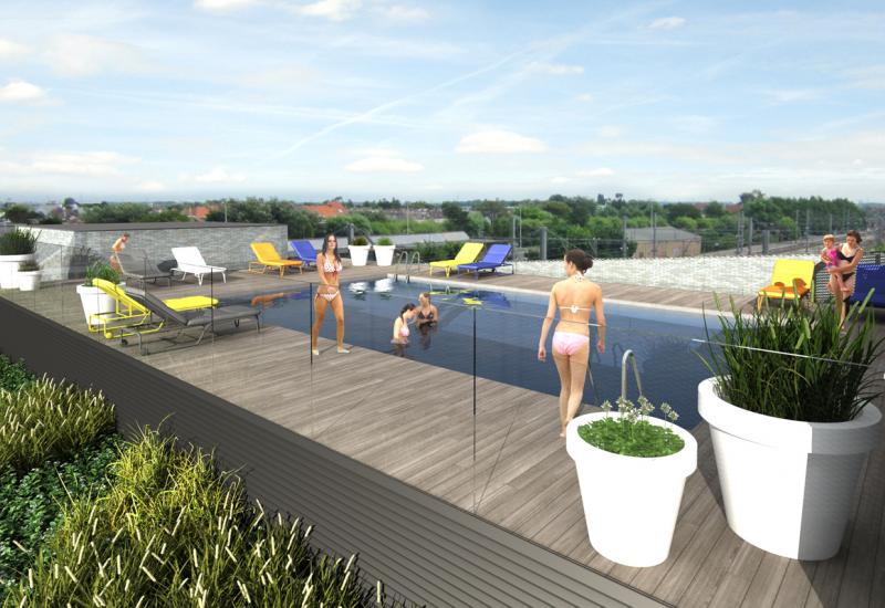 10. Het hotel Mercure komt bovenop het dak van het nieuwe station van Blankenberge, ontworpen door de vermaarde architect Marc Corbiau. Het hotel zal beschikken over een gezellige loungebar en een zwembad bovenop het dak. Een extra aansporing voor hotelgasten die een unieke locatie zoeken en dus een bijkomende garantie op een hoge bezettingsgraad voor jou. Om nog niet te spreken over de meerwaarde bij een eventuele doorverkoop van jouw hotelkamer op deze spannende en originele plek!